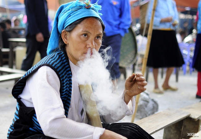 Femme fumant du tabac